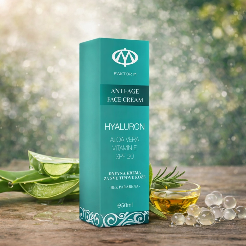Naša dnevna krema za lice pruža izuzetnu negu zahvaljujući moćnim sastojcima poput hijaluronske kiseline, aloe vere i SPF 20. Ova inovativna krema kombinuje prednosti hijaluronske kiseline koja duboko hidrira, poboljšava elastičnost kože i smanjuje vidljivost bora. Aloe vera ulje doprinosi dodatnoj hidrataciji i obnavljanju, dok vitamin E štiti kožu od slobodnih radikala i usporava proces starenja.